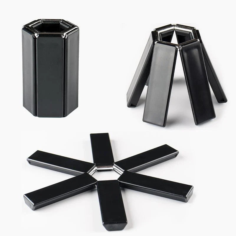 Save on storage space with one handy tool that protects your table or kitchen countertops from unsightly burns. This innovative utensil improves upon rigid "pot mats" with a premium, ultra-flexible, and smart design.